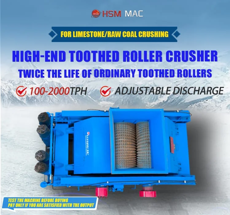 Structure: Adopting parallel rollers rotating in opposite direction, covered with wear-resistant teeth, and controlling the size of discharged material (e.g. 0.5-50mm) through gap adjustment.