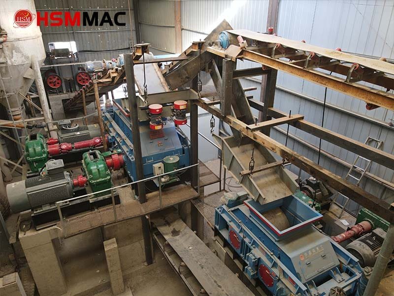 The customer employs three jaw crushers + one 1510 double-roll crusher + one 1080 double-roll crusher to process granite into sand. The jaw crushers serve as primary and secondary crushers, producing 1cm-sized output. The double-roll crusher accepts feed material under 5cm in size, with the finished sand product measuring under 3mm.