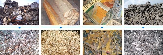 Applicable materials:Shredding plastic, rubber, fiber, paper, wood, car tyre, TV, large hollow materials, such as plastic buckets and some other large vessel, all kinds of combined waste materials, especially those with metals, or worn cutting tools.
