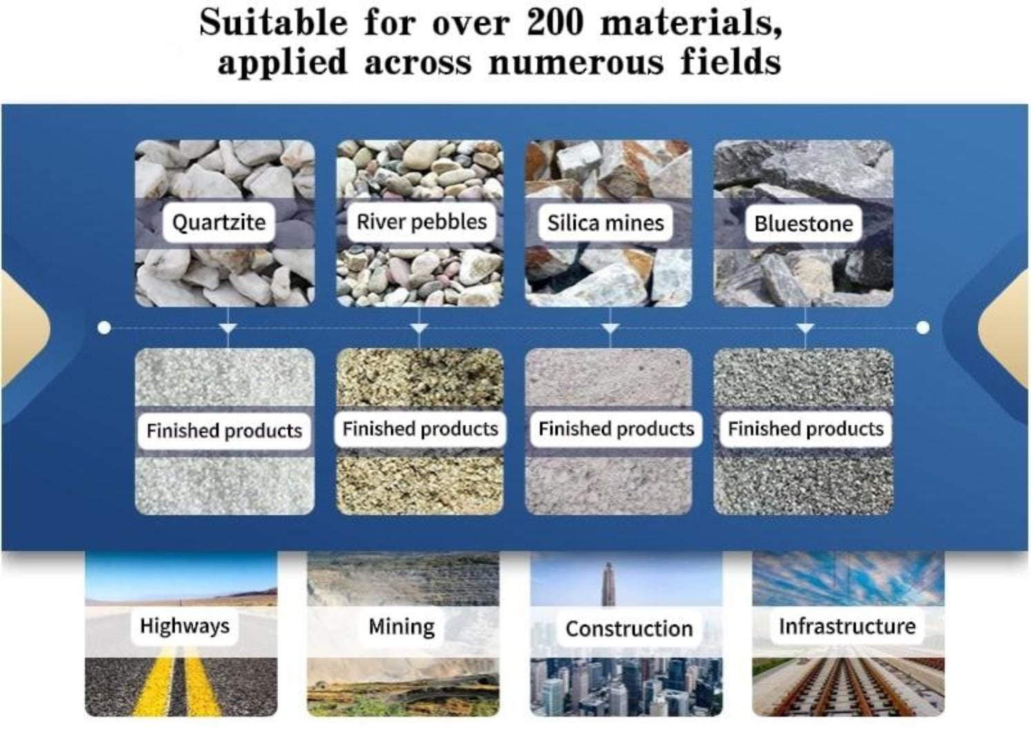 Suitable for crushing in mining, cement, highway, railway, coal, metallurgy, building materials, and other industries.